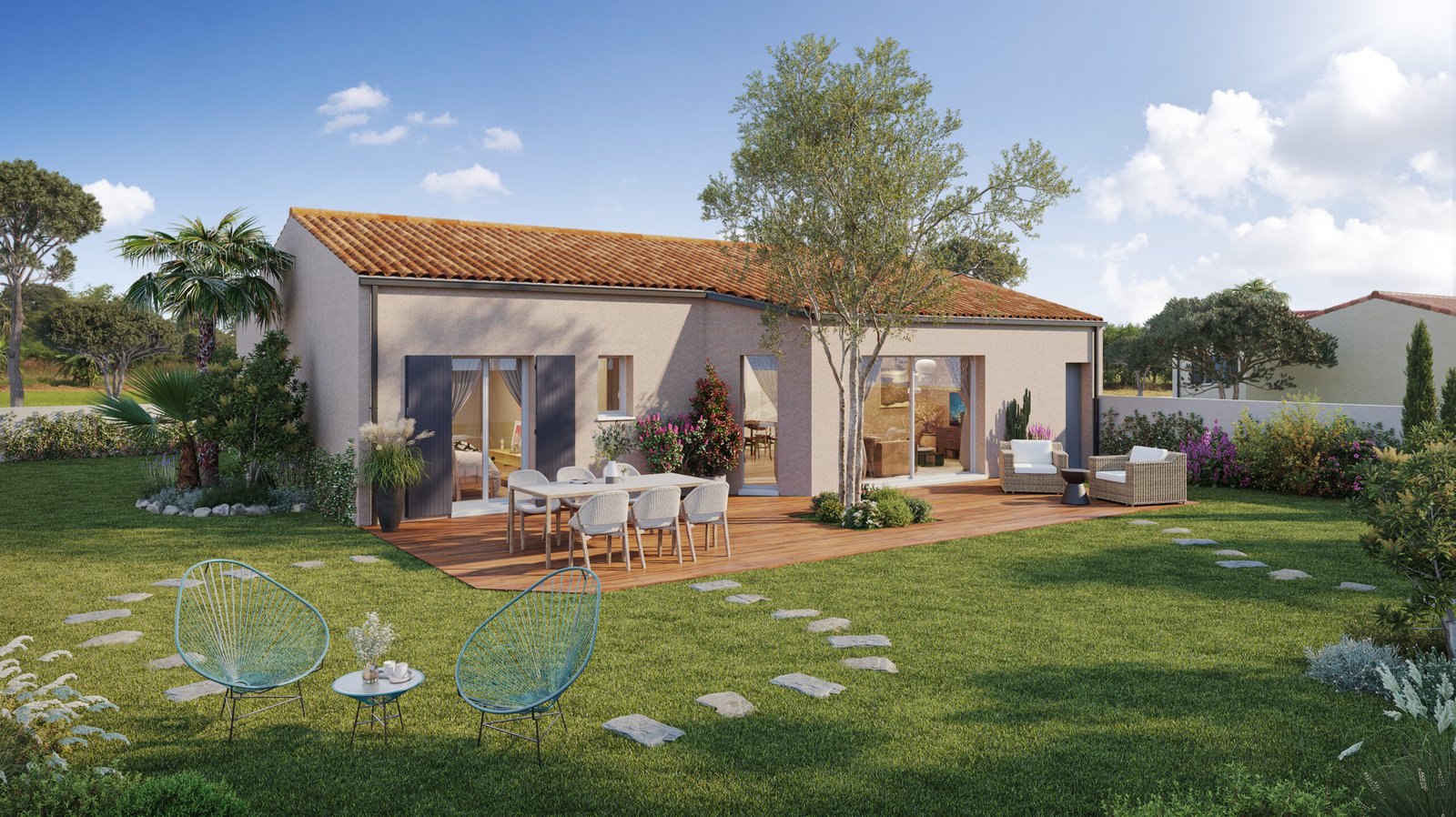 Agathe, notre modèle de plain-pied de 3 chambres, d’une surface habitable de 89 m² allie confort et bien être. Spacieuse et conviviale, la pièce de vie de 42 m² se compose d’une cuisine ouverte sur un séjour lumineux grâce à sa baie. Vous serez séduit par son garage traversant.